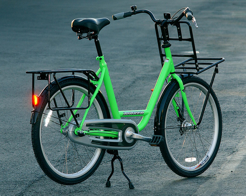 Good condition. Heavy duty Torker Cargo-T bicycle with black metal racks on front and back.